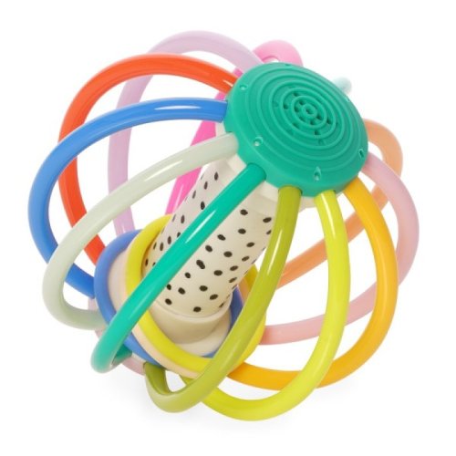 Kousátko ve tvaru míčku je ideální nejen k uchopení, třesení a kutálení, ale napomáhá také tlumit bolest dásní při prořezávání prvních zoubků.