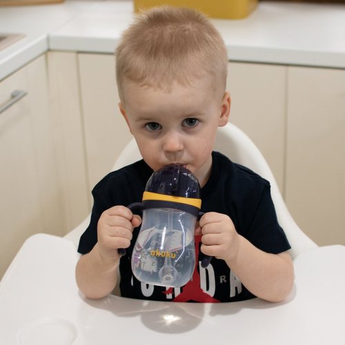 Díky slámce se závažíčkem dítě vypije vše až do poslední kapky a to i láhví otočenou vzhůru nohama. Nepostradatelná doma i na cestách.