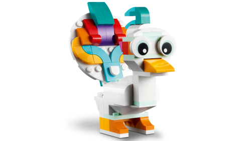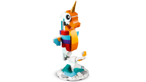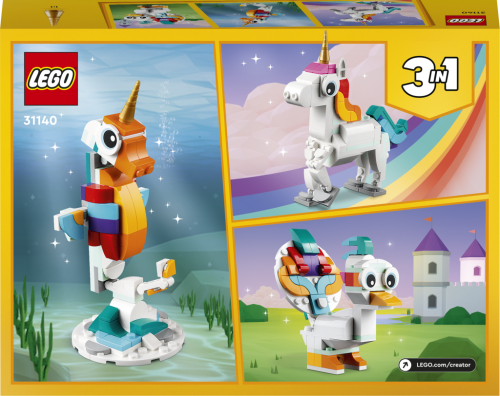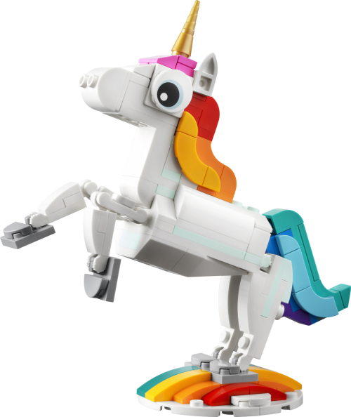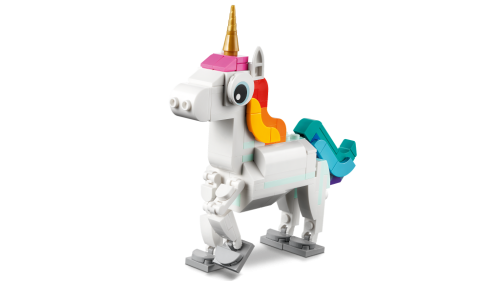 Nápadité děti od 7 let se přenesou do fantastického světa, kde si užijí vzrušující akci se stavebnicí Kouzelný jednorožec (31140). Přináší model jednorožce se zlatým rohem, barevným ocasem a pohyblivýma nohama a kopyty. Na duhovém podstavci si ho můžete vystavit ve 2 polohách: stojícího na všech 4 nohách nebo na zadních.