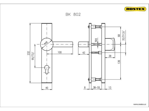 Bezpečnostní kování 802/72 mm je určeno pro vstupní dveře otevírané dovnitř i ven, doporučujeme použít cylindrickou vložku ve 3. BT odolnou proti odvrtání.