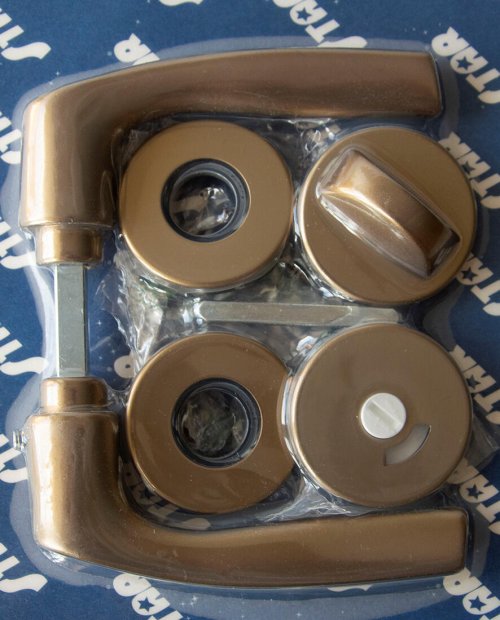 Kování v provedení rozeta v praktickém blistru s kompletním spojovacím materiálem k upevnění.