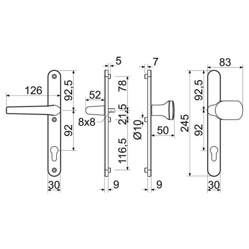 Kování pro plastové dveře klika + klika 92 mm Al BÍ RICHTER.