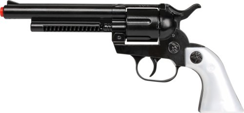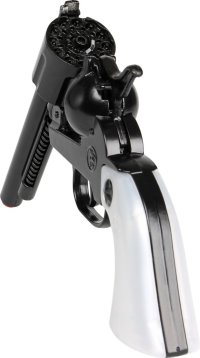 Kovbojský revolver – kovový, černý na kapslíky – dvanáct ran. Velikost revolveru 24,5×11 cm. Vyrobeno ve Španělsku. Věk: 3+