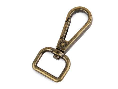 Kovová karabina otočná, průvlek 15 mm - staromosaz