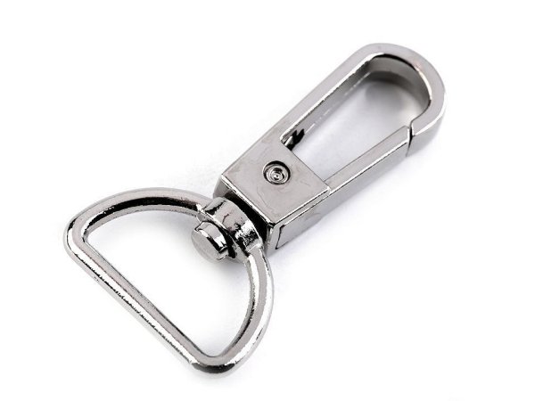 Kovová karabina je otočná. Využijete ji k výrobě klíčenek, vodítek pro psy nebo k připevnění popruhů na tašky a kabelky. Karabina je složena z nemagnetického kovu, magnetické je pouze kolečko uprostřed. [Karabina je vhodná na popruh o šíři 15 mm.]