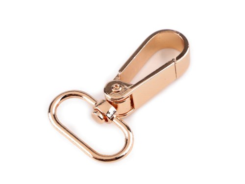 Kovovou otočnou karabinu můžete použít na upevnění popruhů k taškám a kabelkám. Je vhodná také na výrobu vodítek pro psy. Netradičně ji využijete i jako ozdobné zapínání na ramínka šatů. Karabina je vyrobená z nemagnetického kovu, magnetický je pouze šroubek. Karabina je vhodná na popruh o šíři 20 mm.