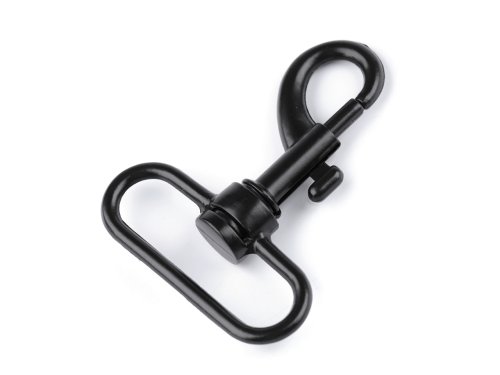Kovová karabina je otočná. Díky své velikosti je vhodná na upevnění popruhů k taškám či kabelkám a také na výrobu vodítek pro psy.