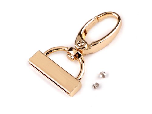 Kovová otočná karabina je s koncovkou, kterou pomocí drobných šroubků připevníte k popruhům či řemínkům. Skvěle se hodí na výrobu tašek, kabelek nebo klíčenek.