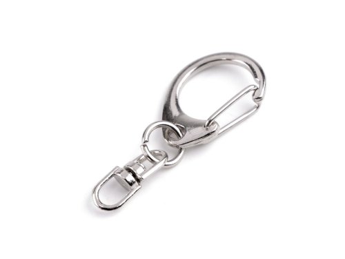 Malá kovová karabinka je připevněná k otočnému obrtlíku. Využijete ji k připevnění různých přívěsků na tašky, kabelky, batohy, k výrobě klíčenek apod.