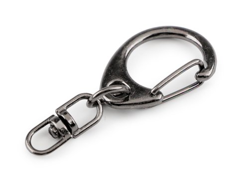 Pevná kovová karabina na otočném čepu. Šířka karabiny činí 18 mm, takže je vhodná na drobnější přívěsky a subtilnější kabelky. Délka 40 mm, šíře 18 mm.