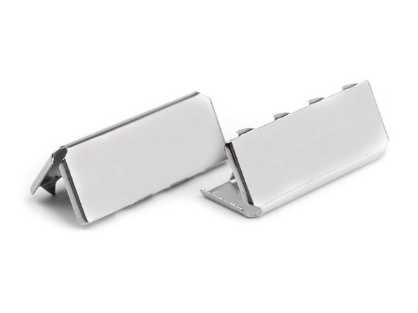 Kovová koncovka se používá převážně na elegantní ukončení opasků či popruhů např. k batohům, sportovním taškám, apod. Na popruh ji přiděláte zamáčknutím pomocí kleští. Vhodná tloušťka popruhu je cca 1 mm.]