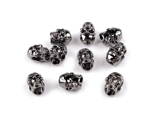 Kovová koncovka s designem lebky má precizně zpracované detaily. Využijete ji na šňůrky u mikin, bund, kabátů, kabelek i bot, ale zajímavě vynikne i na náramku. Šňůrku provléknete koncovkou a zakončíte uzlíkem. Koncovka je vhodná pro šňůrky s průměrem do 4 mm.