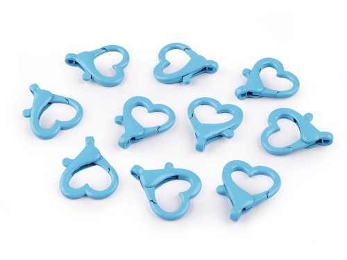 Kovová lakovaná karabina srdce průvlek 15 mm - modrá azuro (10 ks)