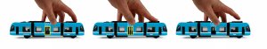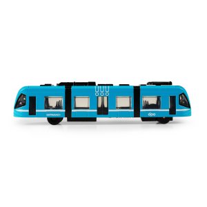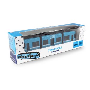 Moderní tramvaj v modré barvě, která jezdí na zpětný chod je perfektním dárkem pro všechny tramvajové nadšence. Dveře na jedné straně vozu lze manuálně otevřít a zavřít pomocí pantografu na střeše vozu. Tramvaj je vyrobená z kovu, je dlouhá 23 cm a je velmi podobná tramvaji, která jezdí ulicemi v Ostravě. Tato hračka byla vyrobena ve spolupráci s Dopravním podnikem města Ostravy a městem OSTRAVA!!!