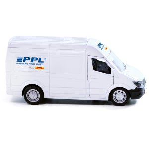 Rozšiř si svůj vozový park a pořiď si tuhle originální kovovou dodávku s logem přepravní společnosti PPL. Auto má otevírací přední i zadní dveře. Jezdí na zpětný chod a jeho délka je 14,5 cm.