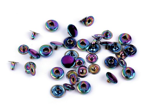 Kovové druky jsou zajímavé holografickým povrchem, který hází duhové odstíny. Druky využijete na oděvy i doplňky. Jsou určené ke spojování středně silných látek o tloušťce 0,5 - 1,5 mm. Nýtování se provádí lisem, který najdete pod kódem 070241 nebo 790770 a pistonem.