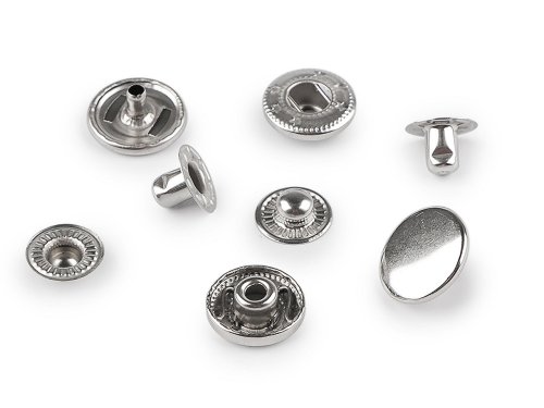 Kovové druky z nerezové oceli využijete na oděvy, tašky, kabelky apod. Nýtování se provádí lisem, který najdete pod kódem 070241 nebo 790770 a pistonem. Sada se skládá ze 4 dílů.