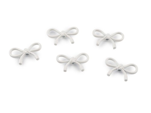 Kovové korálky / přívěsky mašle 13x20 mm - bílá (5 ks)