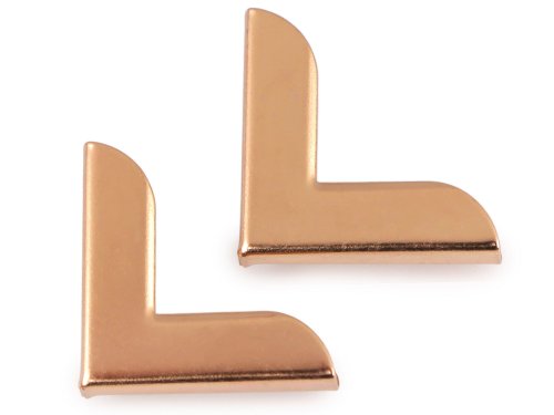 Kovové rohy jsou určené pro zpevnění a ochranu rohů kabelky. Může sloužit i jako ozdoba na rohy obrazu, diáře apod. Rožek nasuneme na materiál a lehce zmáčkneme kleštěmi tak, aby dobře držel. Rohy jsou vhodné pro materiál o tloušťce max. 4 mm.