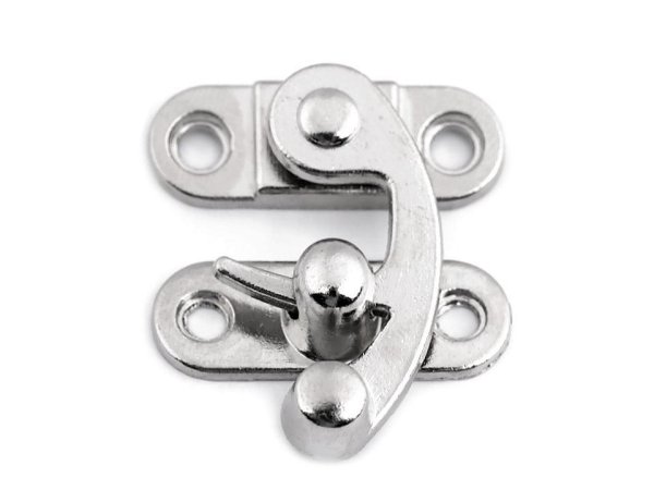 Kovové zapínání ve vintage stylu bude praktickým i ozdobným prvkem, který využijete k uzavírání vašich dřevěných a kartonových krabiček, menších truhliček nebo šperkovnic. Skládá se ze dvou částí, které přišroubujete ke krabici. [Šroubky nejsou součástí výrobku.] Průměr dírek je 3 mm.