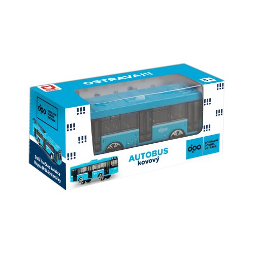 Kovový mini autobus v modrém provedení je unikátní hračkou, která nadchne všechny malé i velké fanoušky dopravních prostředků. Autobus je dlouhý cca 8,5 cm, jezdí na volný chod a je velmi podobný tomu, který jezdí ulicemi v Ostravě. Tato hračka byla vyrobena ve spolupráci s Dopravním podnikem města Ostravy a městem OSTRAVA!!!
