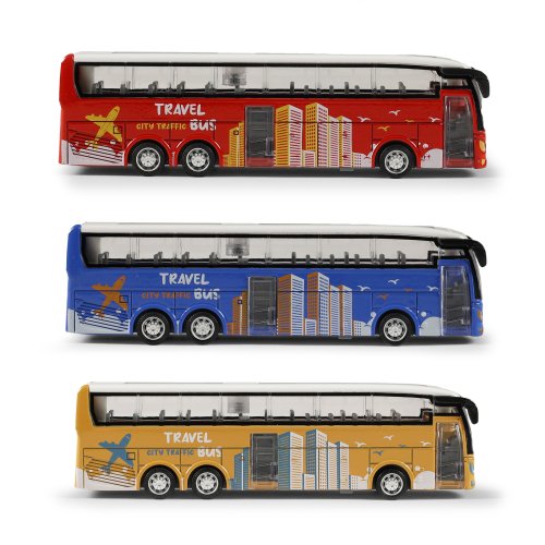 Nastup si do autobusu a cesta za dobrodružstvím může začít! Tento mini kovový autobus jezdí na volný chod, má otevírací dveře, kovové tělo s plastovými prvky a jeho délka je 12 cm.