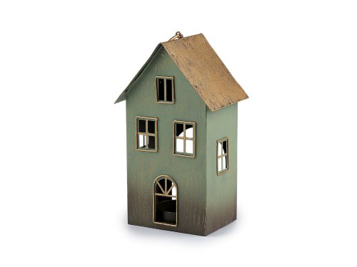 Kovový domeček nádherně rozzáří jakýkoliv interiér a vytvoří v něm příjemnou atmosféru. Vleze se do něj svíčka s průměrem až 5 cm. Je stabilní a na povrchu má jemnou patinu. Vyniká nejen svou jedinečností, ale i vysokou kvalitou. Domeček můžete postavit na stůl či poličku, ale díky očku ho můžete i pověsit. Vynikne i v kombinaci se stromečkem, který je v podobném designu.