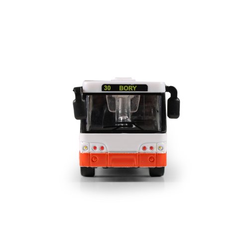 Moderní kovový autobus v červeném provedení je unikátní hračkou, která nadchne všechny malé i velké fanoušky dopravních prostředků. Autobus je dlouhý cca 18 cm, jezdí na zpětný chod.