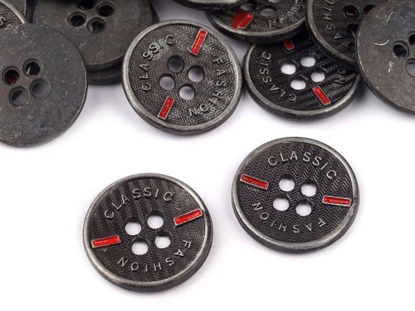 Knoflíky jsou vyrobené z nemagnetického kovu. Zdobí je nápisy "classic" a "fashion". Jsou čtyřdírkové. Knoflíky můžete našít na košile, mikiny, bundy apod. [Knoflíky jsou baleny v sáčku.] Velikost knoflíků naleznete v této tabulce.