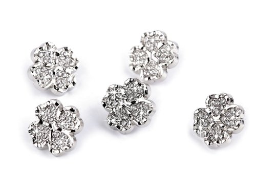 Kovové knoflíky čtyřlístky se úchvatně třpytí díky broušeným kamínkům, kterými jsou osázené. Vyniknou na sakách, košilích, šatech apod. Mají spodní přišívání. Velikost knoflíků naleznete v této tabulce.