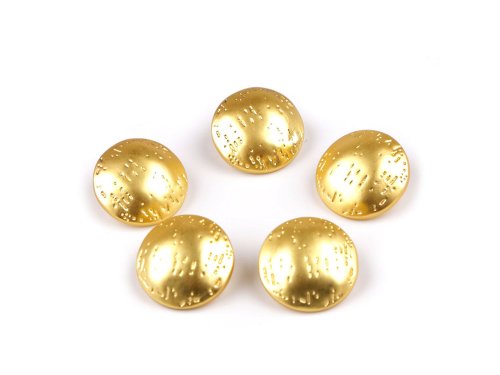 Vypouklé kovové knoflíky stylově vyniknou na sakách, kabátech, svetrech, šatech, košilích apod. Mají jemně tepaný povrch a spodní přišívání. Velikost knoflíků naleznete v této tabulce.