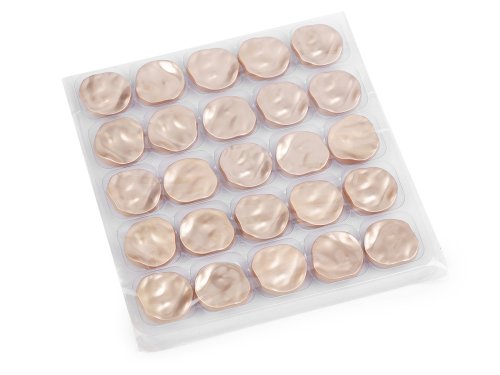 Kovové knoflíky vás na první pohled zaujmou svým neotřelým "pomačkaným" vzhledem. Jsou vhodné k našití na saka, kabáty, svetry nebo také na doplňky, jako jsou kabelky, tašky či batohy. Velikost knoflíků naleznete v této tabulce.