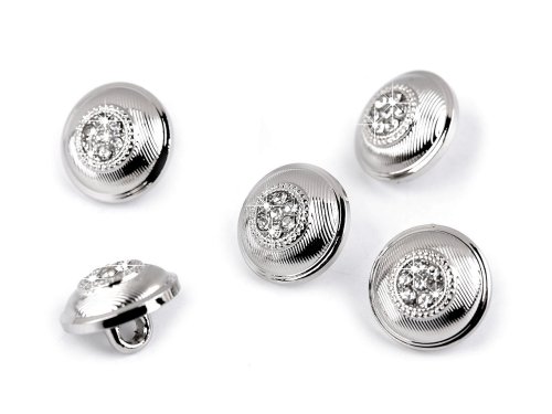 Kovové knoflíky vyniknou na sakách, košilích, šatech apod. Pyšní se středem ve tvaru květu z broušených kamínků. Mají spodní přišívání. Velikost knoflíků naleznete v této tabulce.