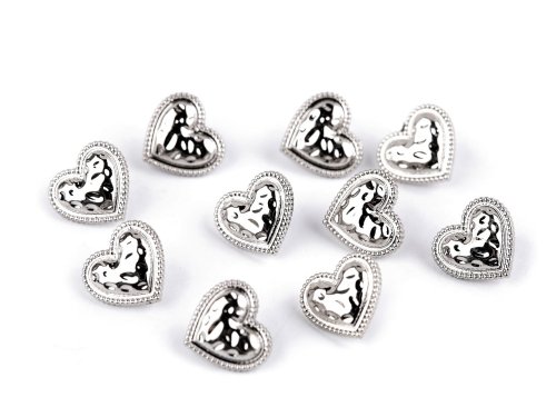 Kovové knoflíky ve tvaru srdce jsou zajímavé tepaným povrchem. Vyniknou na sakách, košilích, šatech apod. Můžete je použít i na dekoraci andělek a jiných postaviček. Mají spodní přišívání. Velikost knoflíků naleznete v této tabulce.