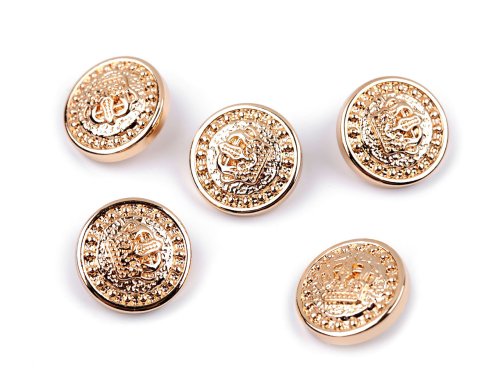 Knoflíky ozdobené motivem královské koruny jsou vyrobené ze slitiny zinku a nemagnetických kovů. Elegantně vyniknou na sakách, kabátech, svetrech apod. Můžete je našít také na doplňky, například kabelky, tašky nebo klobouky. Knoflíky jsou balené v sáčku.Velikost knoflíků naleznete v této tabulce. Zinek chrání kov proti korozi. Pozinkované výrobky po vyprání zůstávají beze změn.
