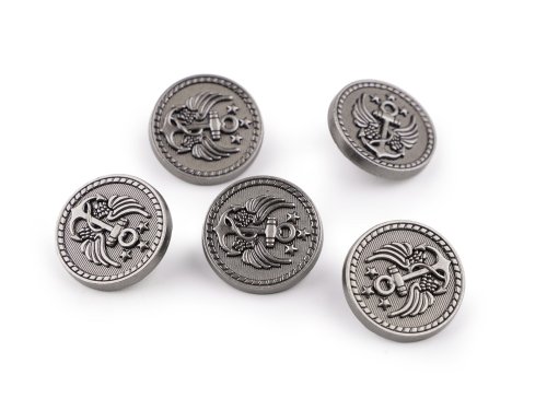 Kovové knoflíky vynikají kvalitním zpracováním s propracovanými detaily. Mají jemný matný lesk. Zajímavě budou vypadat na sakách, kabátech, svetrech, šatech, kalhotách i kraťasech. Můžete je našít také na doplňky, například kabelky, tašky nebo čepice kapitánského stylu apod. Velikost knoflíků naleznete v této tabulce.