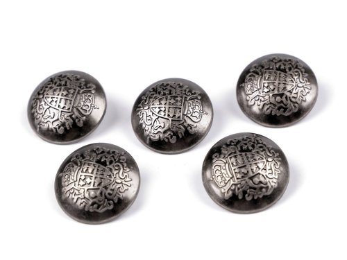 Kovové knoflíky se kromě praktického využití stanou elegantním doplňkem vašeho oděvu. Knoflíky se spodním přišíváním skvěle vyniknou na saku nebo kabátku vojenského stylu. Díky vyobrazenému erbu se také výborně hodí k přišití na uniformy, myslivecké oblečení či dobové kostýmy. Velikost knoflíků naleznete v této tabulce.