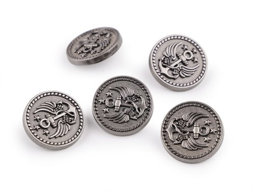 Kovové knoflíky vynikají kvalitním zpracováním s propracovanými detaily. Mají jemný matný lesk. Zajímavě budou vypadat na sakách, kabátech, svetrech, šatech, kalhotách i kraťasech. Můžete je našít také na doplňky, například kabelky, tašky nebo čepice kapitánského stylu apod. Velikost knoflíků naleznete v této tabulce.