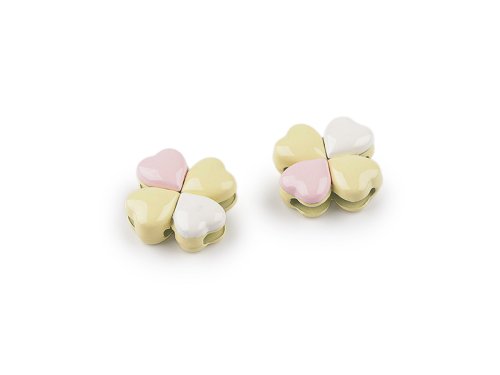 Kovový komponent / přívěsek čtyřlístek Ø15 mm - žlutá světlá (2 ks)