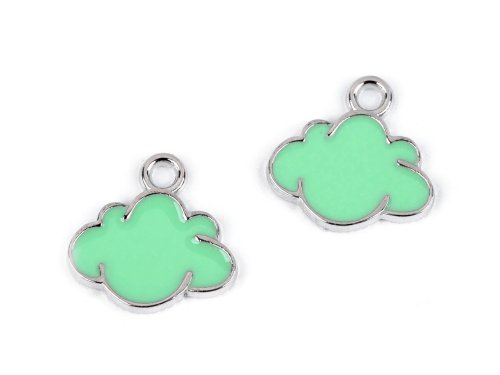 Kovový přívěsek / taháček na zip duha, mráček, deštník, srdce, vejce, víla - zelená pastel sv mrak (2 ks)