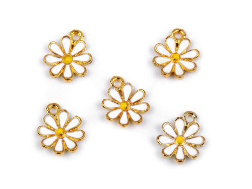 Kovový přívěsek / taháček na zip květ Ø12 mm - bílá (5 ks)