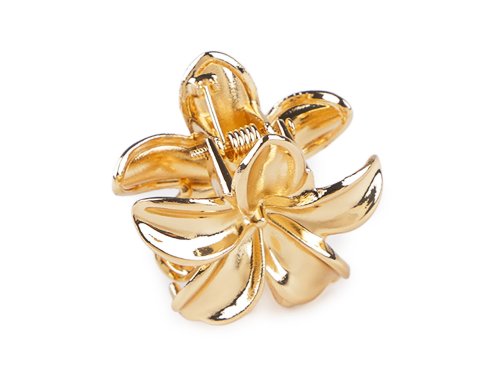 Malý kovový skřipec do vlasů ve tvaru květu je elegantním a stylovým doplňkem pro každodenní i slavnostní použití. Má vysoký lesk, díky svému silnému stisku a zubů udrží vlasy pevně na místě bez nepříjemného tahání nebo sklouzávání.