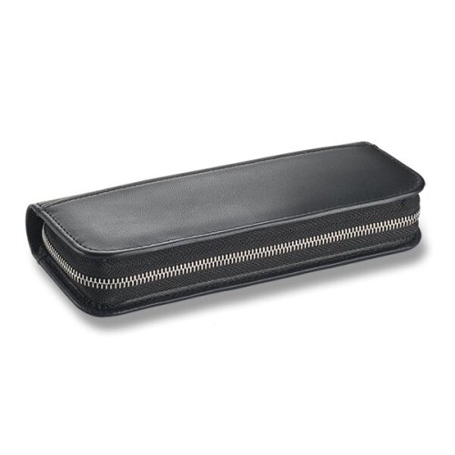 Kožené černé pouzdro Lamy na 2 pera. Obsahuje slot na karty a na drobné poznámky. Pouzdro je opatřeno leštěným chromovaným zipem.
