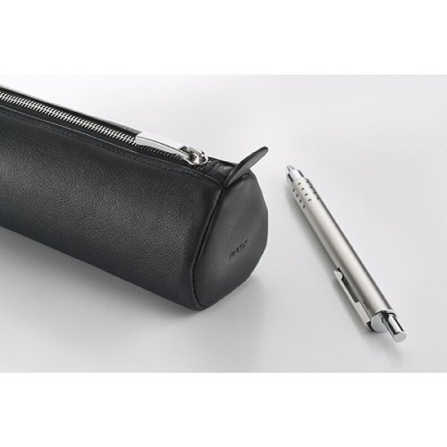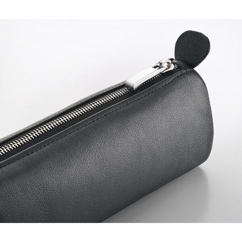 Kulaté černé kožené pouzdro Lamy s vnitřní textilní podšívkou. Pouzdro je opatřeno leštěným chromovaným zipem.