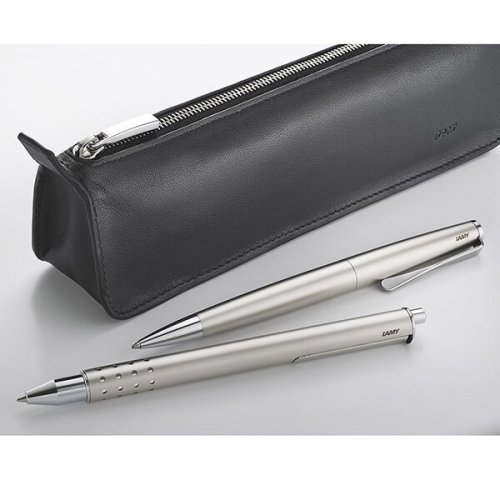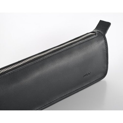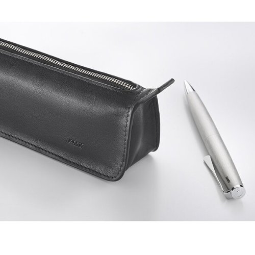 Černé trojúhelníkové kožené pouzdro Lamy s vnitřní textilní podšívkou. Pouzdro je opatřeno leštěným chromovaným zipem.
