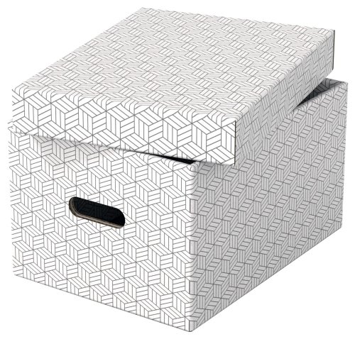 Sada tří středních lepenkových úložných boxů s moderním a stylovým geometrickým designem Ideální pro ukládání dokumentů, hraček, knih a dalších drobností Lze použít samostatně nebo uložit na polici Díky …