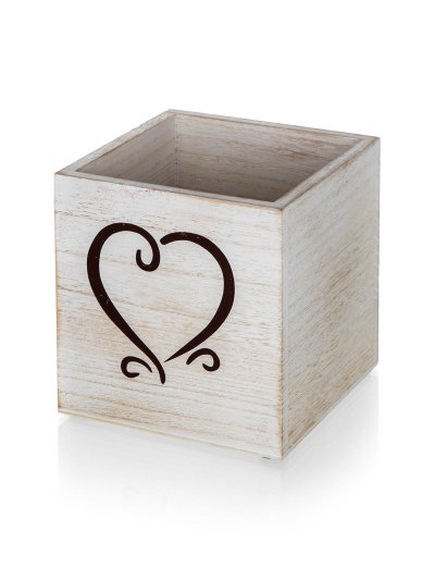 Tato krabička o rozměrech 13 x 13 x 14 cm se hodí jako dekorace na suché květy, jako stojánek na tužky, pravítka a jiné poklady.
