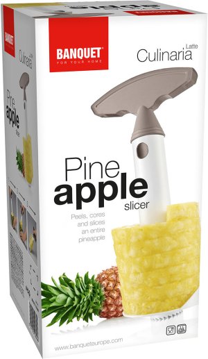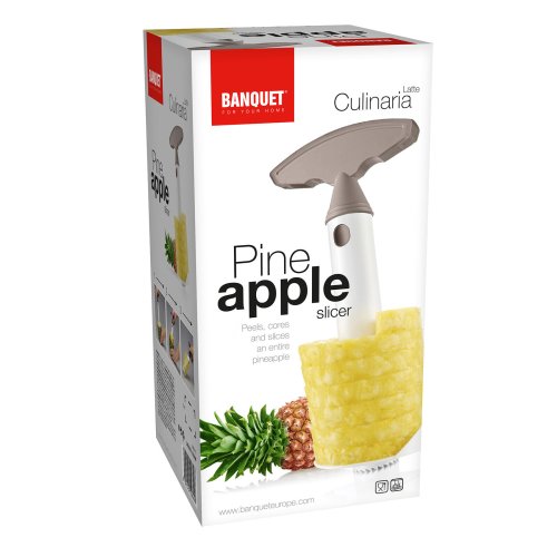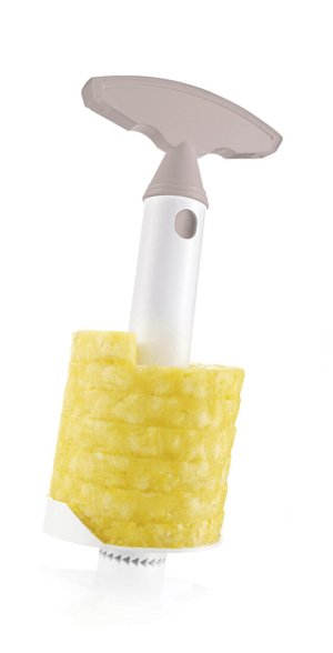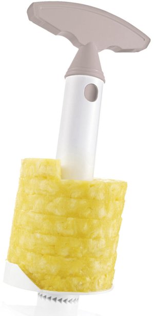 Kráječ na ananas CULINARIA Latte je pomocník pro přípravu plátků ananasu bez slupky a tvrdého středu. Jednoduše a rychle vykrojíte dužinu vývrtkou. Kráječ je vyroben z odolného plastu, po použití lze mýt v myčce na nádobí.