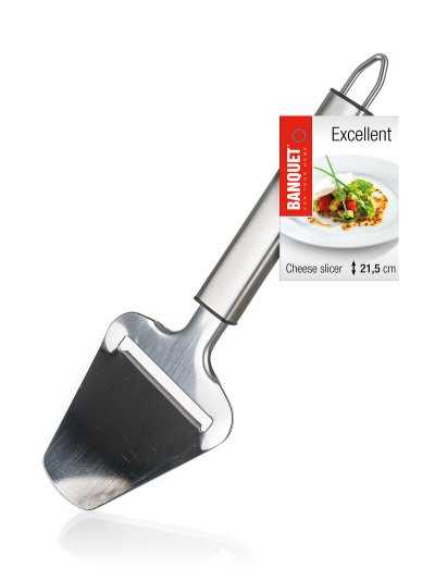 Kráječ na sýr EXCELLENT 21,5 cm je vyroben z nerezové oceli, usnadní krájení sýrů na stejné plátky. Kráječ lze využít také na ztuhlé máslo. Držadlo je opatřeno praktickým očkem pro možnost závěsu.