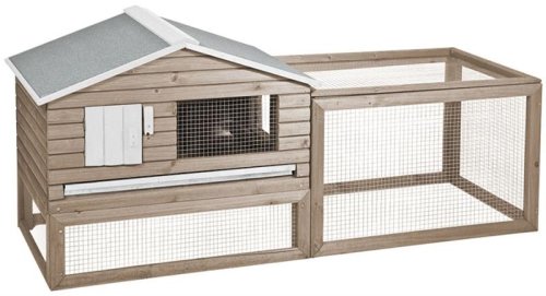 Venkovní dřevěná králíkárna vhodná pro králíka nebo další zvířata se dvěma patry. Horní patro je rozděleno na otevřený prostor a uzavřený prostor pro odpočinek a spánek. Oba prostory mají samostatná dvířka. Horní patro se snadno čistí díky výsuvnému šuplíku. Do spodního patra, které slouží jako prostor pro hopkání a hru vede žebřík. Výběh je opatřen dvířky. Králíkárna je ošetřena jedním nátěrem. Pro prodloužení její životnosti doporučujeme nátěr pravidelně opakovat. Králíkárnu umístěte na rovný povrch. Pokud je na nezpevněné ploše (trávníku), kontrolujte, aby se králíci nepodhrabali. Rozměry: délka 158 cm, šířka 61 cm, výška 75 cm